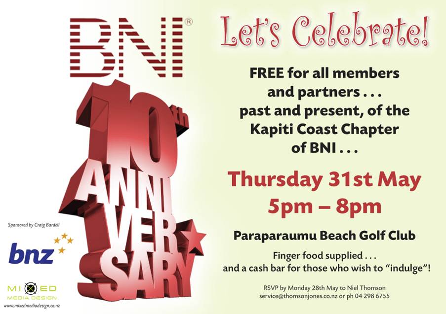 Home Be Inspired BNI Kapiti Coast Chapter celebrates 10 years
